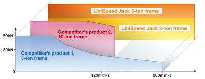 The new LiniSpeed Jack surpasses conventional jacks in its capacity to combine high-speed operation with a compact design. In addition, the innovative structure results in an exceptionally low floor height compared with conventional jacks. And by reducing the equipment height, this new product helps customers save space.