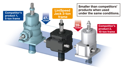 Because the jack can be used in line with servo motor’s rated rotation speed of 3000 rpm, compact motor frames and couplings can be used, which contributes to a drive unit that is both more compact and lower in cost.